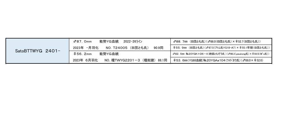 90.5mmが羽化してきております。このライン同腹成績は、89mm台1頭、88mm台1頭、87mm台1頭になっております。